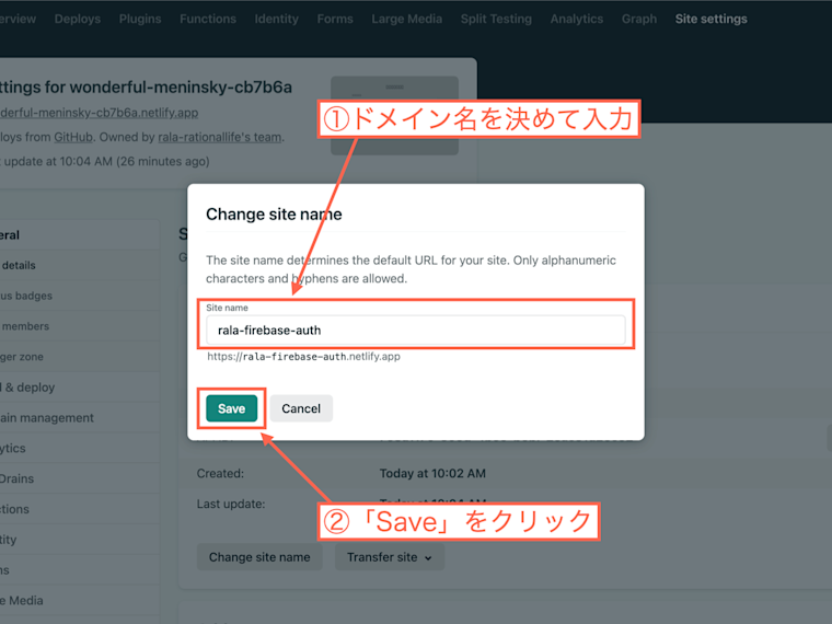 ドメイン名を決めて入力し、「Save」をクリックします。